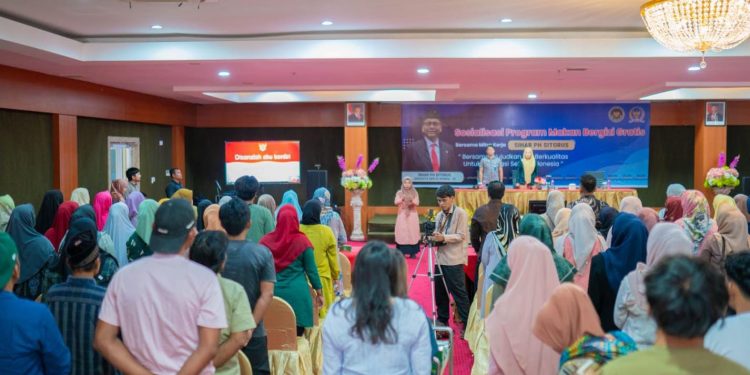 PADANG LAWAS UTARA, Sumatera Utara – Badan Gizi Nasional (BGN) bersama Anggota Komisi IX DPR RI, Sihar P.H. Sitorus, menggelar Sosialisasi Program Makan Bergizi Gratis (MBG) di Kabupaten Padang Lawas Utara (Paluta), Jumat (31/10). Kegiatan yang berlangsung di Hall Candi Portibi, Hotel Sapadia Gunung Tua ini merupakan bagian dari upaya pemerintah memperkuat ketahanan gizi dan pangan masyarakat berbasis potensi lokal.